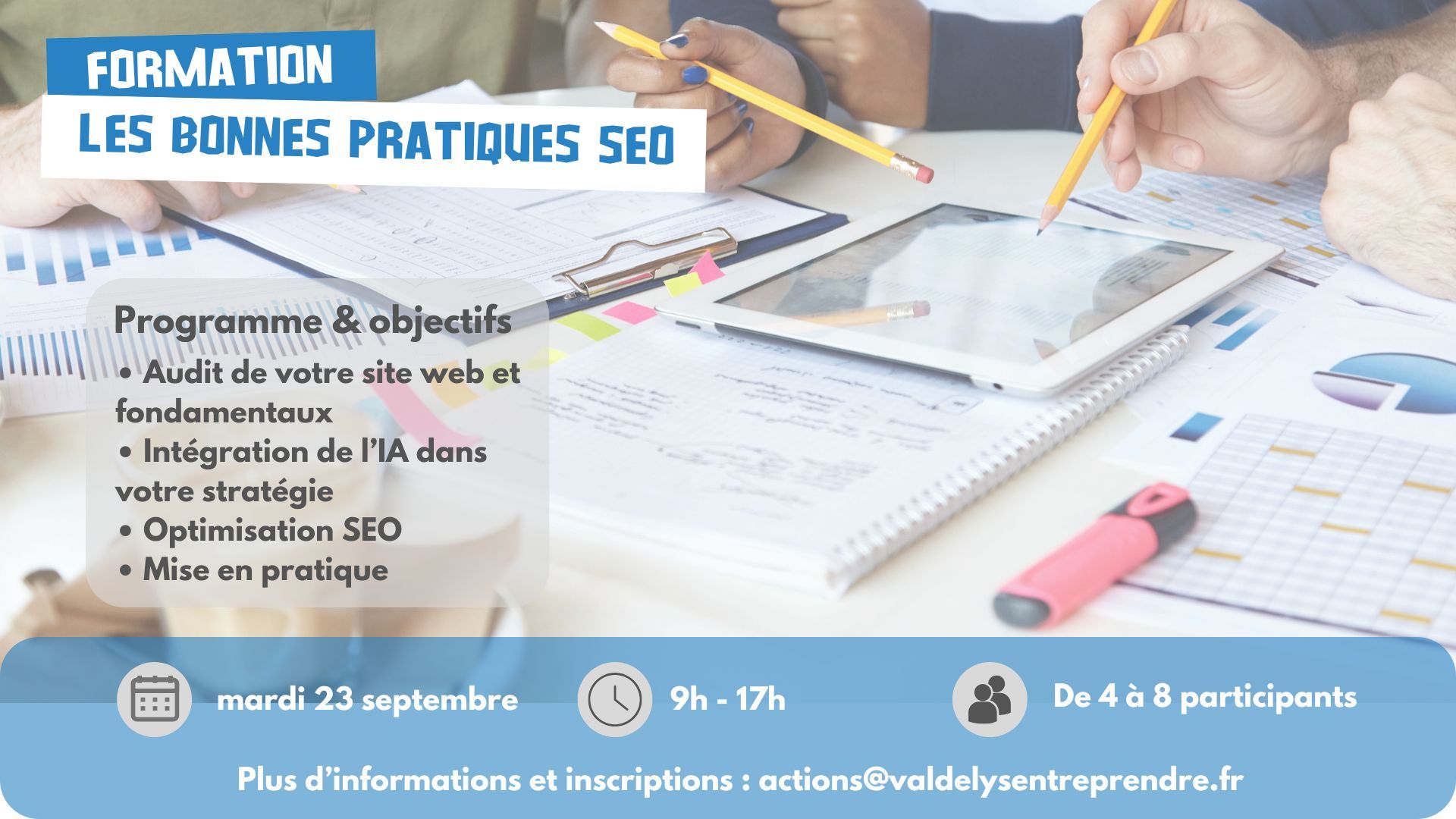 En tant que réseau, notre objectif est d'accompagner les entreprises pour qu'elles intègrent ces aspects essentiels au sein de leur culture d’entreprise. Chez Val de Lys Entreprendre, nous proposons des ateliers thématiques, formations et conférences, notamment en matière de santé au travail et de bien-être. Mais ce n'est pas tout. Nous abordons également des thèmes aussi divers que la fiscalité, la fresque du climat, l'énergie, le droit social, la bureautique, les retraites, le développement de la présence digitale, les enjeux de l'intelligence artificielle, le recrutement et l'accompagnement du dirigeant.